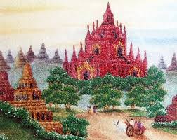 Ready to be framed. Foriegn tourists just love myanmar s trademark gem pictures traders say. Cow drawn carts are traditionally used for transportation. For thousands of years burma has been renowned for its wealth of gemstone deposits. Myanmar gemstones painting for your grand gifts.